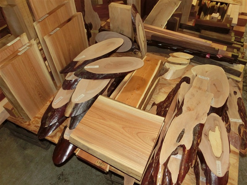 柾目材、板目材、杢の入った材など様々で、半額対象商品です。